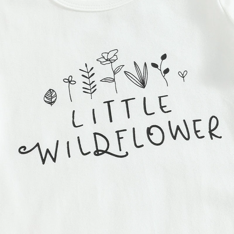 The Little Wildflower Set is a chic and stylish set for your little one. from the Little Wildflower printed bodysuit to the flared pants that are comfortable and versatile. The bodysuit is designed with short sleeves, making it perfect for warm weather, and the pants feature an elastic waistband for a comfortable fit. This set is sure to become a favourite in your little one's wardrobe.